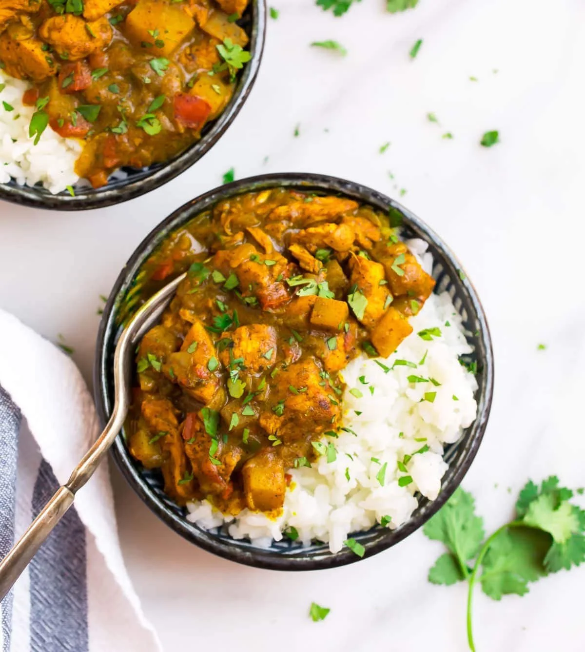 Bone-in chicken pieces, chicken stock, and chef's selection of vegetables